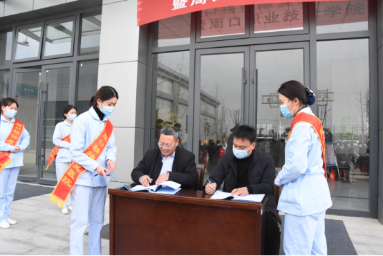 周口市卫健委副主任刘建峰代表市卫健委对双方签约表示祝贺,他指出实习就业基地的签约揭牌,标志着双方的合作迈出了实质性的一步,也为今后的人才培养和就业奠定了坚实基础,必将促进院校紧密结合,实现双赢,共同发展。