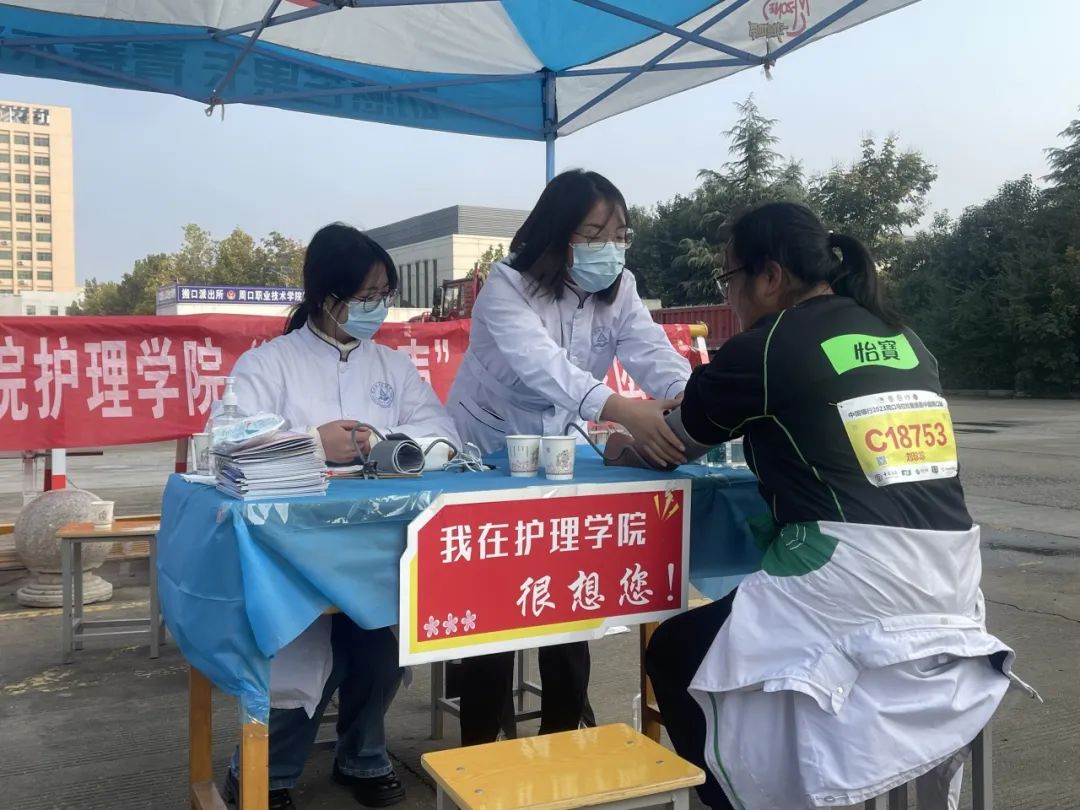 为助力周口马拉松赛事顺利举行,弘扬新时代志愿服务精神,2023年11月12日,bevictor伟德官网,韦德bevictor,韦德体育开展“助力周马,我们在行动”志愿服务主题党日团日活动。赛道内,参赛选手们斗志昂扬、激情澎湃,迈着矫健的步伐,激烈奔跑。赛道外,我院志愿者们默默守护,为选手们测量血压、血糖,送上一杯杯温水,提供能量补给等。