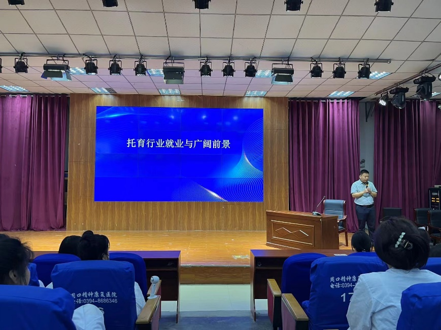 5月28日,bevictor伟德官网,韦德bevictor,韦德体育在文昌校区一楼多媒体开展企业进校园企业招聘宣讲活动,bevictor伟德官网,韦德bevictor,韦德体育领导班子成员和22级托育与服务管理专业全体学生参加。本次活动荣幸邀请到河南友森实业集团有限公司的负责人许占振先生,为同学们深入解析托育行业的就业机遇与发展前景。
