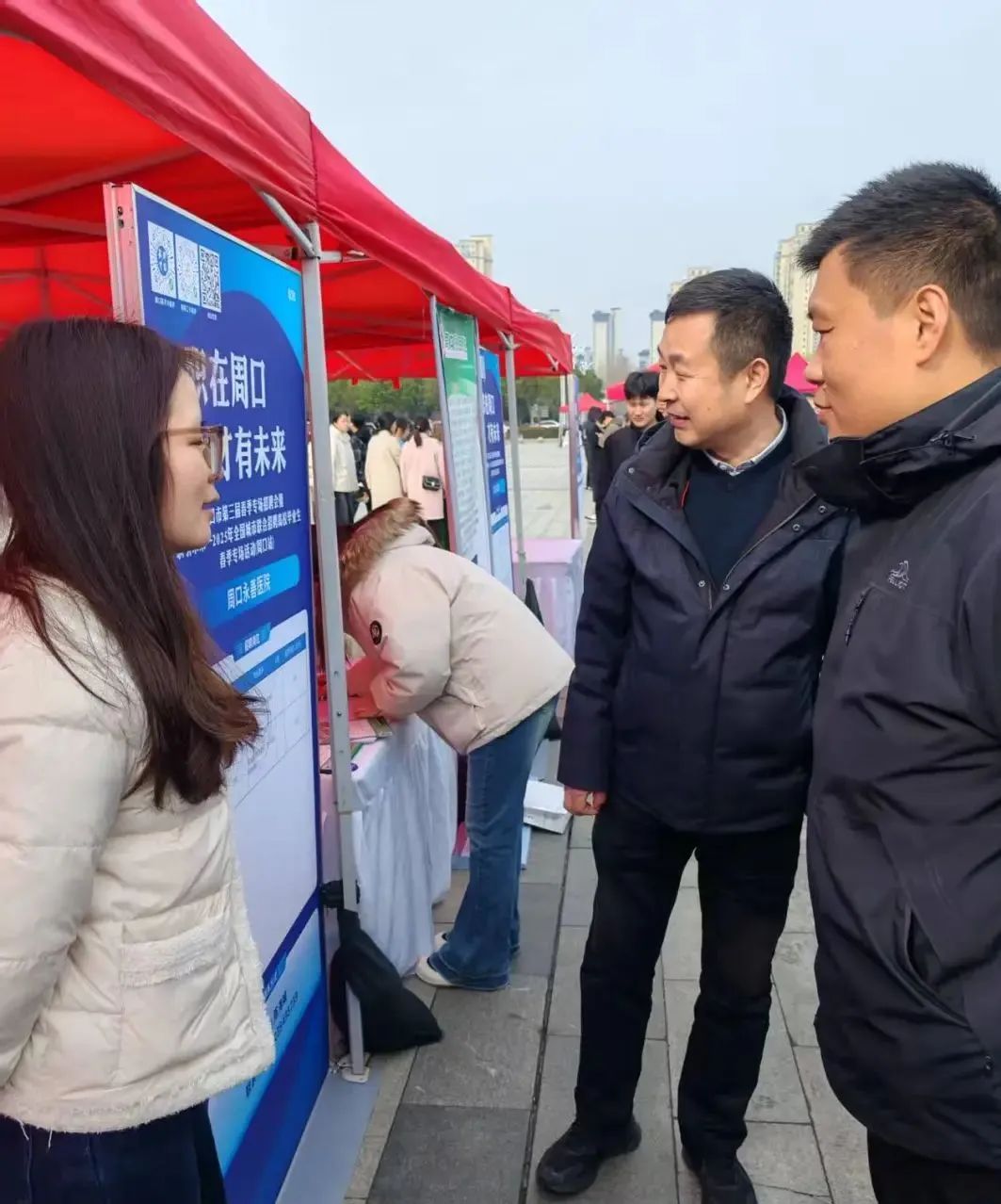 为充分调动我院2025届毕业生的就业积极性,进一步推动毕业生就业,3月15日,韦德bevictor,韦德体育2025届毕业生参加在周口市体育中心广场举办的2025年在周高校毕业生专场招聘会,韦德bevictor,韦德体育党总支书记孙先锋、副院长孙晓鹏、学管办主任孙慧悦、就业指导员李停停和专职辅导员王伟来到招聘现场。