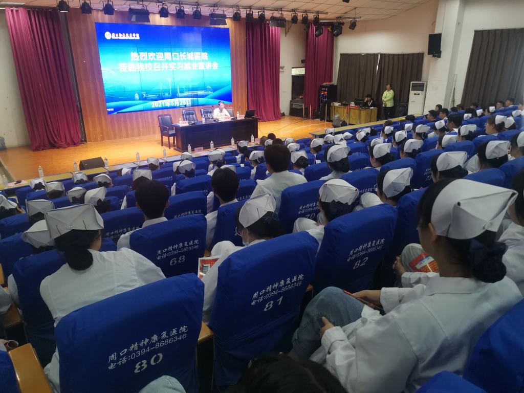 为持续推进毕业生就业工作,提高学生就业数量和质量,打通学生就业最后一站,2021年5月26日,周口人合医院副院长陈伟、护理部副主任魏丽以及周口长城医院贾震书记、人事部负责人郭红杰一行应邀到我院开展实习生和护士招聘宣讲会,韦德bevictor,韦德体育于爱霞院长、武新雅副院长、综合办赵新主任以及韦德bevictor,韦德体育2019级护理、助产专业学生出席宣讲会。