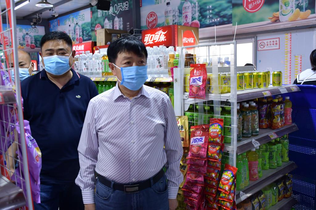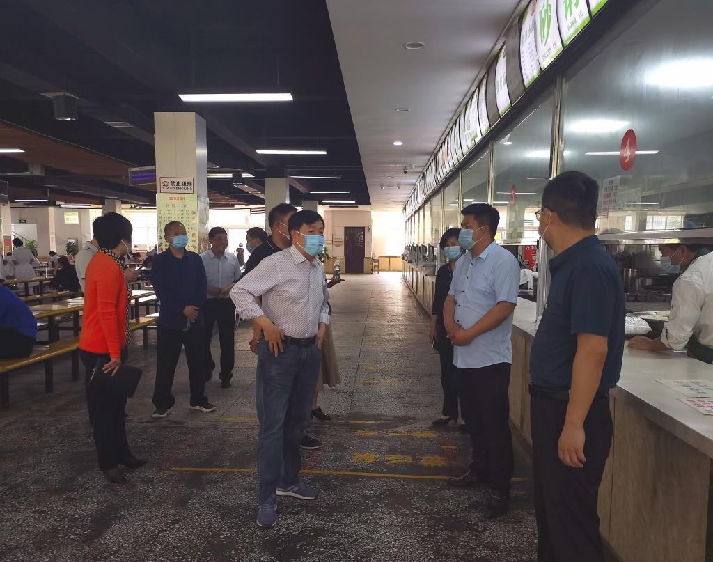 刘士欣书记一行首先查看了学生餐厅、校园超市、体育场、学生公寓等场所,全面了解校园在疫情时期,封闭管理期间,学生学习、生活及教师授课情况。