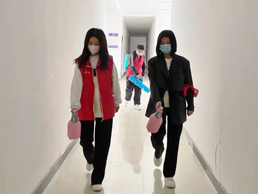 在校园里,积极组织消杀工作,并通过各种形式宣讲预防新冠病毒的措施,鼓励同学们勤洗手、戴口罩、不聚集、多运动,注意饮食卫生,增强个人体质,提倡不买快递,不点外卖,减少与外界不必要的接触。
