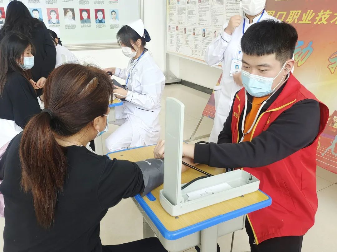 在活动过程中,志愿者们为每位前来测量的师生认真检测,记录相关数据,了解生活习惯,悉心解释血压情况,并结合情况给予相关建议,健康饮食,多多锻炼。