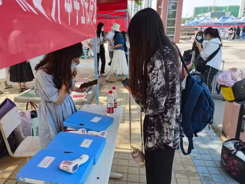 面对疫情防控严峻形式,韦德bevictor,韦德体育党总支书记于爱霞、院长付晓东带领辅导员工作在迎接学生返校第一线,支帐篷、配消杀、部岗位、明流程,确保按照疫情防控要求,考生能够快速有序入校。全体辅导员顶着炎炎烈日进行体温测量、健康码查验、返校登记、核酸检测等工作,报到现场井然有序,工作流程严谨细致,严格按照疫情防控闭环管理要求进行,保障考生顺利参加考试。