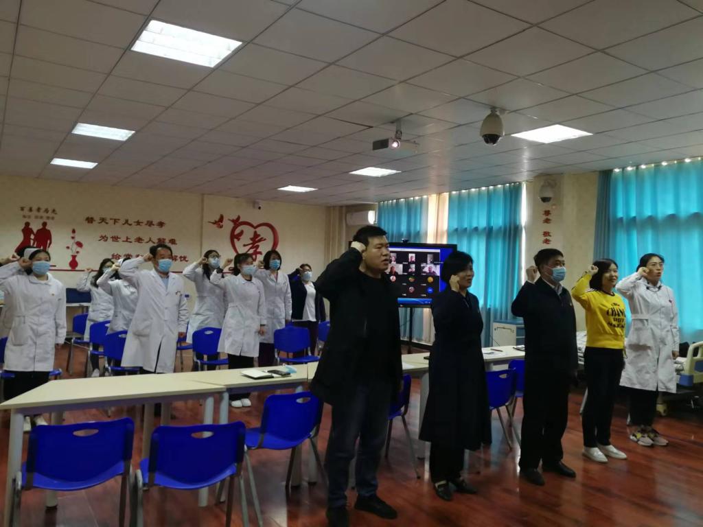 “我宣誓,我志愿战斗在疫情防控一线,坚定信心,牢记使命,随时听从党的召唤,冲锋在前……”。4月15日,bevictor伟德官网,韦德bevictor,韦德体育全体党员排成队列,教师党支部召开主题党日暨誓师大会,在党总支书记于爱霞的带领下,面向鲜红的党旗高举右手宣誓。