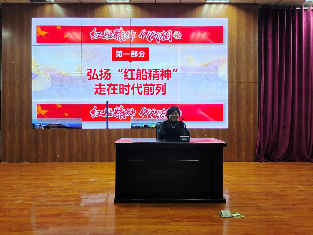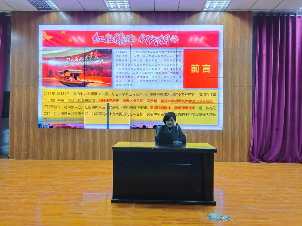 在专题党课上,于书记以《红船精神代代相传》为题,从四个方面讲解了红船精神。一是弘扬“红船精神”走在时代前列;二是“红船精神”——党的先进性之源;三是“红船精神”对党的先进性建设具有重要意义;四是在新的实践中继承和弘扬“红船精神”。于书记强调,这些精神内容丰富,我们一定要深刻学习领悟,让红色基因不断迸发出强大力量。