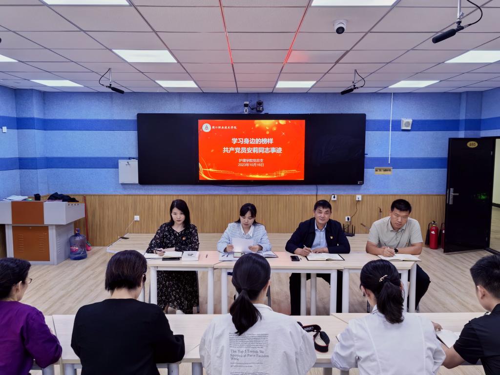 该院党总支书记张华珍详细介绍了安莉同志的感人事迹,号召全院党员向安莉同志学习,牢记初心使命,坚定理想信念,加强党性修养,充分发挥党员的先锋模范作用,始终保持共产党人对党的教育事业无限忠诚,为学院的发展尽心竭力、无私奉献。