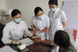 上午9点,村民们早早地来到了义诊活动现场排队等候。志愿者们也迅速做好准备工作,开始了义诊。志愿者们开始为村民测血糖、量血压,测量骨密度,讲解常见病、多发病的预防诊治问题和日常保健知识,认真聆听就诊村民的既往病史,细致解答村民问题,给出具体的诊疗建议,做到疾病早发现、早预防、早治疗。期间,还就心肺复苏、海姆立克急救法等日常急救知识进行了示范讲解,并邀请村民上台操作体验。倡导大家都要做自己健康的第一责任人,保持良好的心态、合理膳食、适当运动、注重预防,帮助村民养成健康的生活方式和生活习惯。